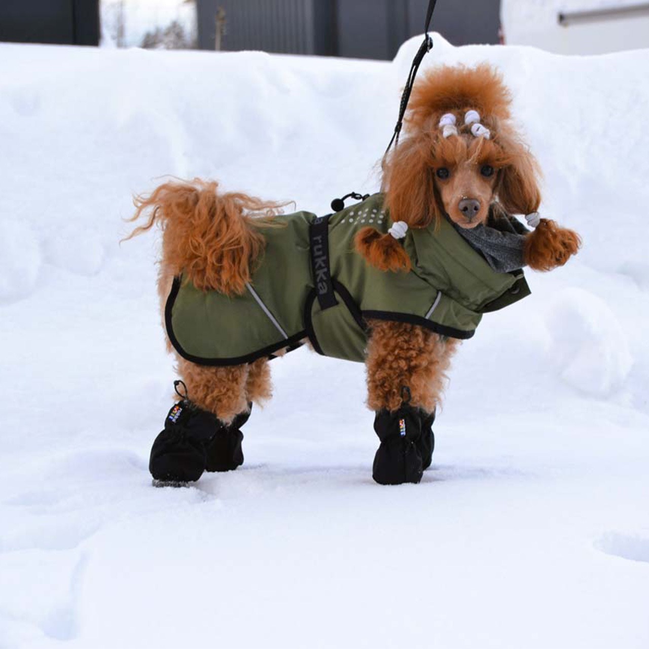 水しぶき・草の実・雪の固まりから愛犬の脚を保護