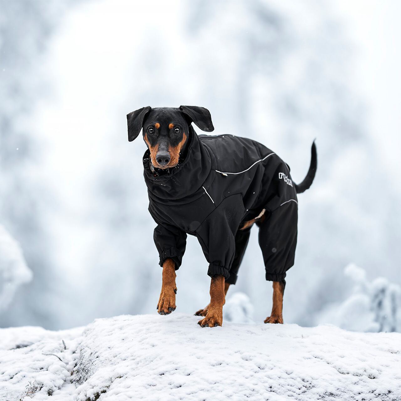 ジッパー裏に犬の毛や皮膚を保護するウィンドリスト付き